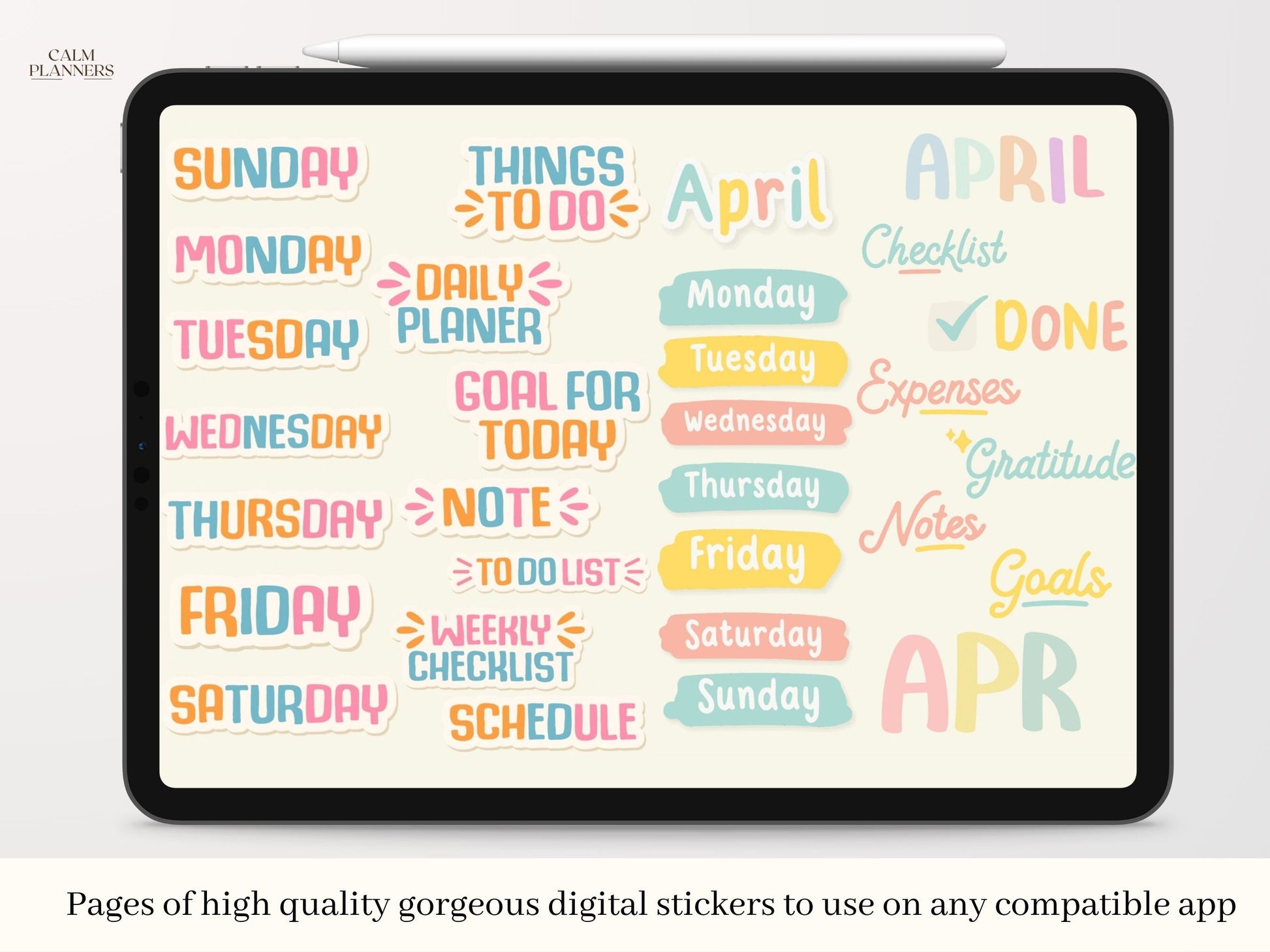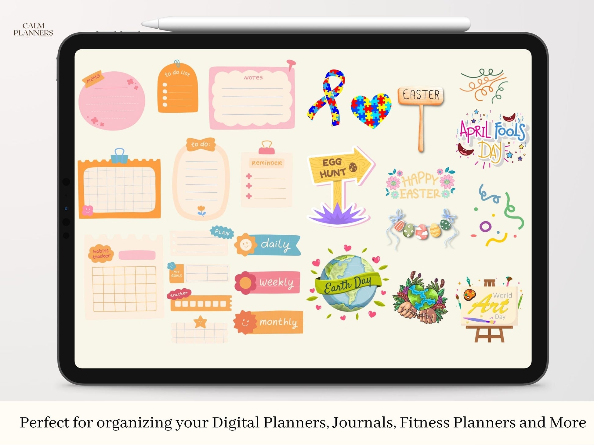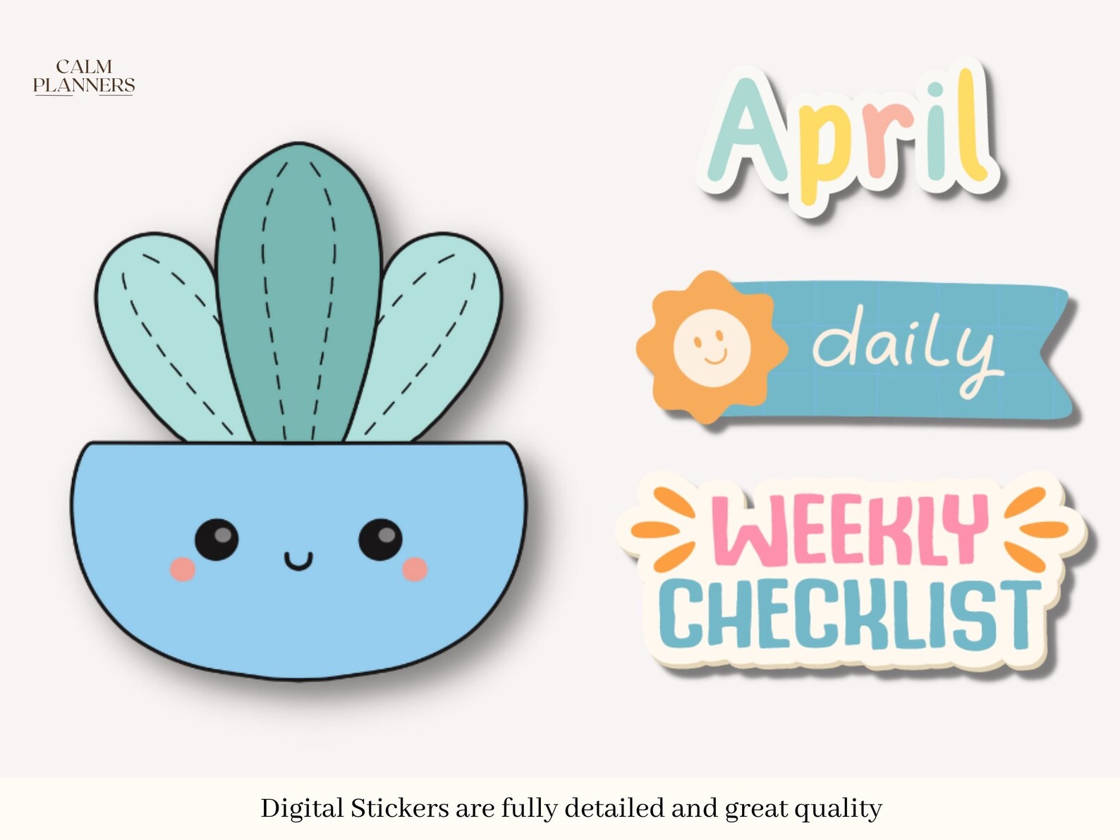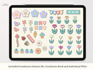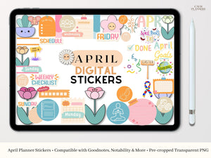 Introducing the April Digital Stickers! This digital planner sticker set is perfect for decorating your Goodnotes digital planner or journal. The included collection is high quality and perfect for adding a little bit of fun and personality to your pages. The digital stickers come with a Goodnotes book, Goodnotes elements collection and an individual PNG zip that can be used in other apps as well. There are 150 stickers in total. Get your planner sticker fix today and make your pages pop!