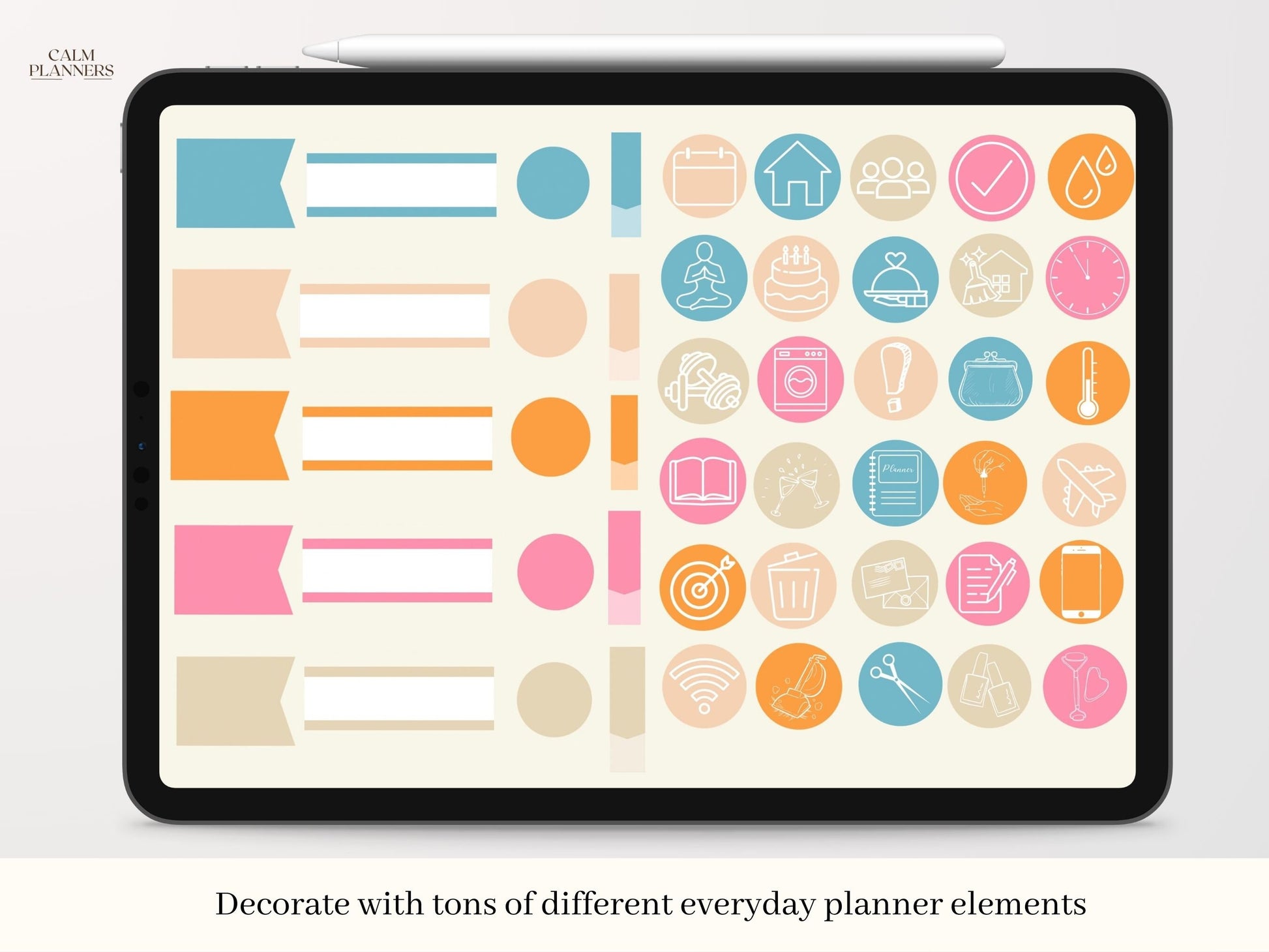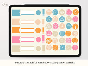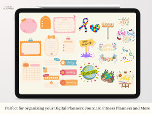 This set comprises over 150 original digital planner stickers! Our stickers come already PRE-CROPPED and with a Goodnotes elements collection ready to import! Our digital stickers are so easy to download and use with any compatible digital planner app. Crafted stickers to use with your Goodnotes planner and other digital planners! They are versatile and instantly transform your planner pages. Mix and match stickers to suit your personal style.