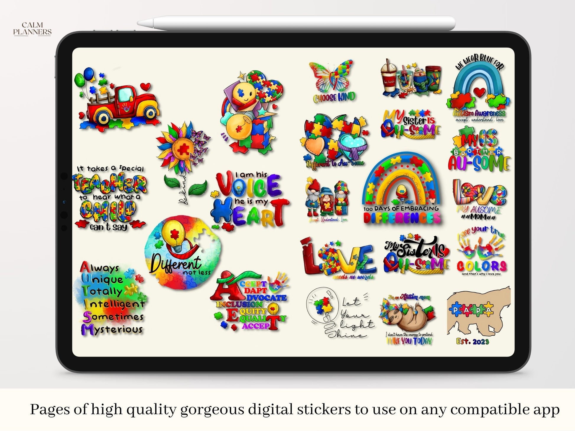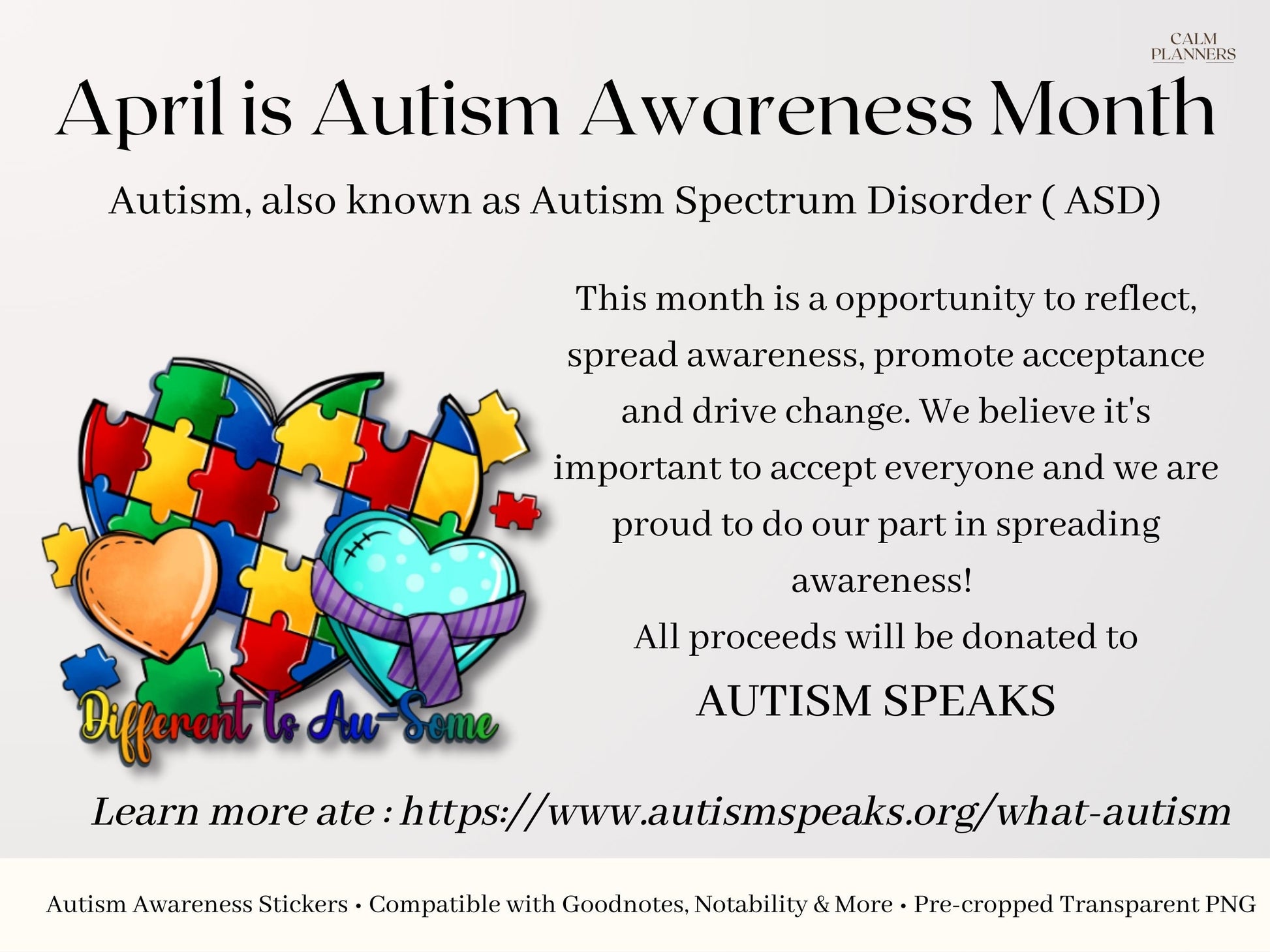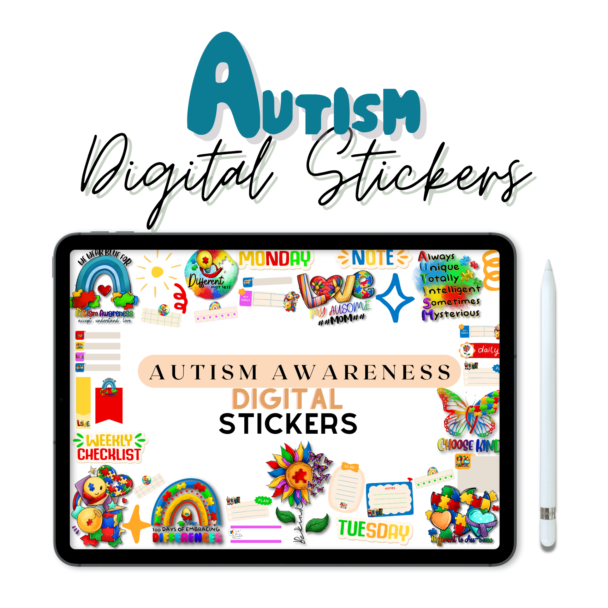 Spread LOVE and ACCEPTANCE all year round with these beautiful Autism Awareness Digital Stickers. This is a great way to show your support for such an important cause.