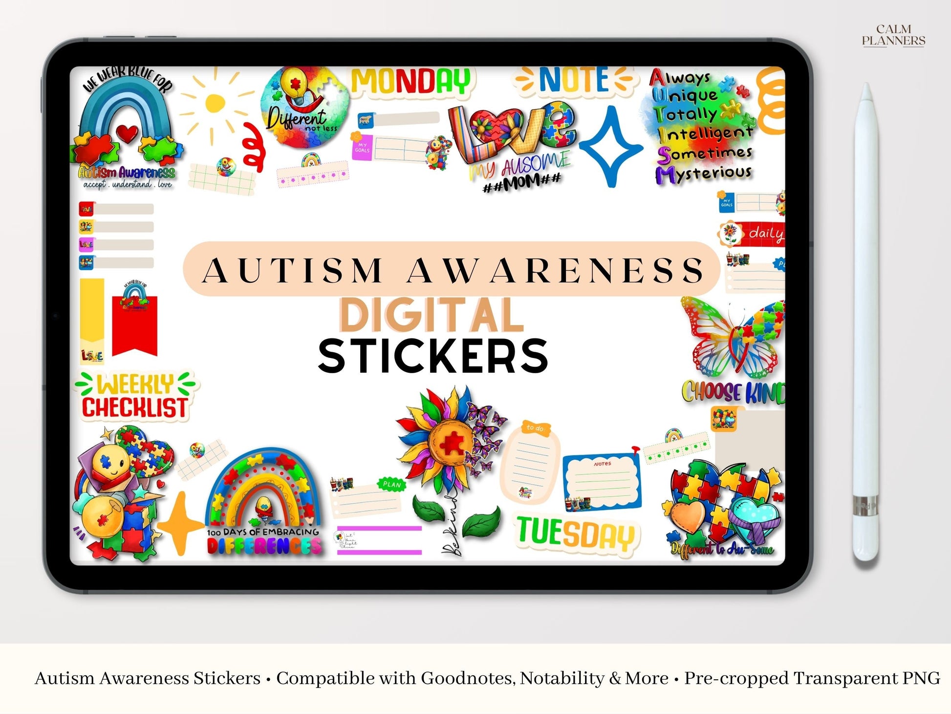 Autism Awareness Digital Sticker Bundle, Planner stickers for goodnotes, Autism stickers Goodnotes Stickers, Pre-Cropped Individual, PNGs Digital Stickers, Pre-cropped iPad Stickers