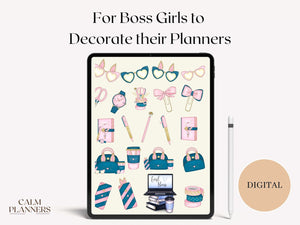 Looking for a way to add some style and creativity to your digital planner? Look no further than our Planner Girl Digital Sticker Bundle! With over 90 HD boss girl and planner girl related aesthetic stickers included, this is the perfect way to get organized, achieve your goals and feel inspired. Included goodnotes book and easy to use instructions to get you decorating your planner in no time!