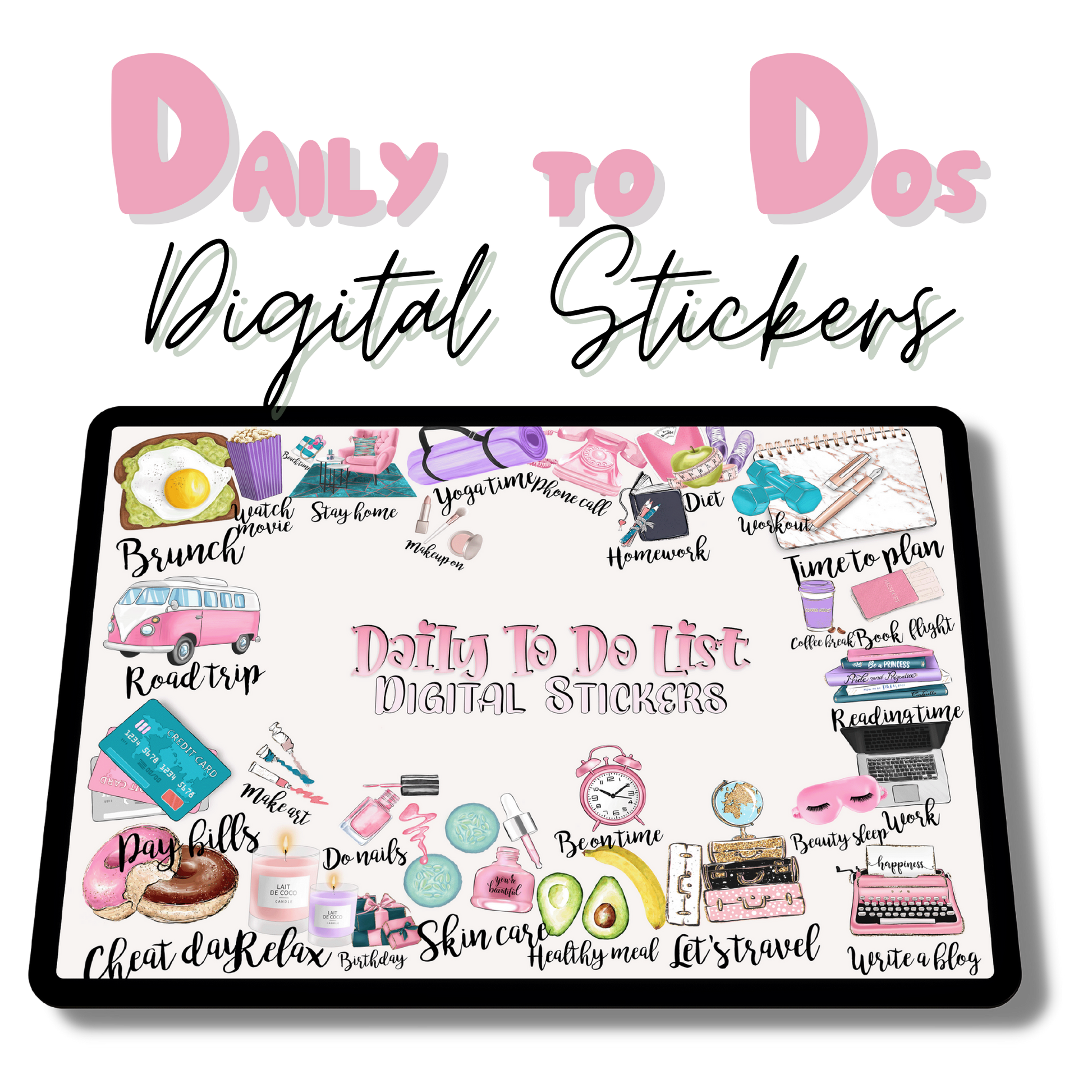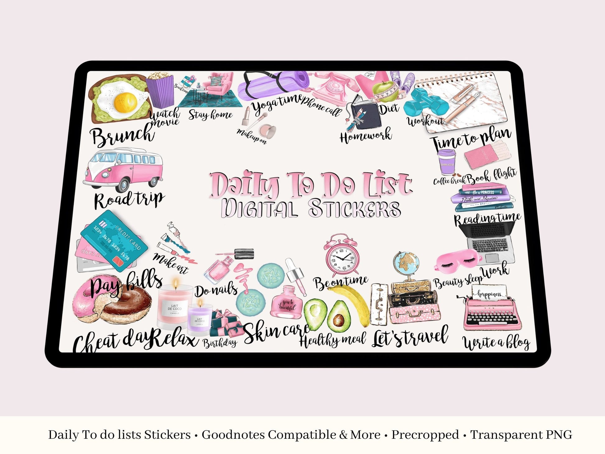 With these gorgeous Pre-crop Daily Stickers, you can get creative and organized with your tasks, routines and schedules! This complete digital planner sticker set features 40 high-definition digital stickers, all with their own unique book. You can use these stickers to plan out your days, weeks or even months in advance. Plus, they make great motivators to help you stay on track with your goals. Get creative and get organized today with digital planner stickers!