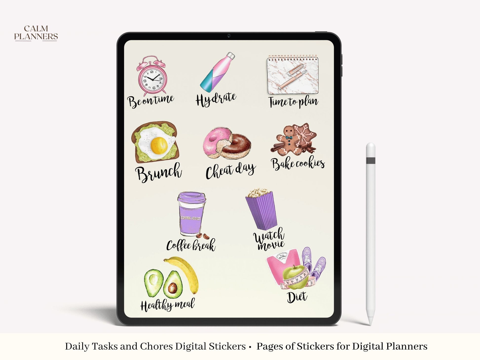 Our stickers come already PRE-CROPPED and with a Goodnotes book! Hand-drawn stickers to use with your Goodnotes planner and other digital planners! They are versatile and instantly transform your planner pages. Mix and match stickers to suit your personal style. Decorate your planner with digital stickers for each month.