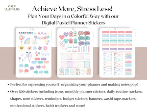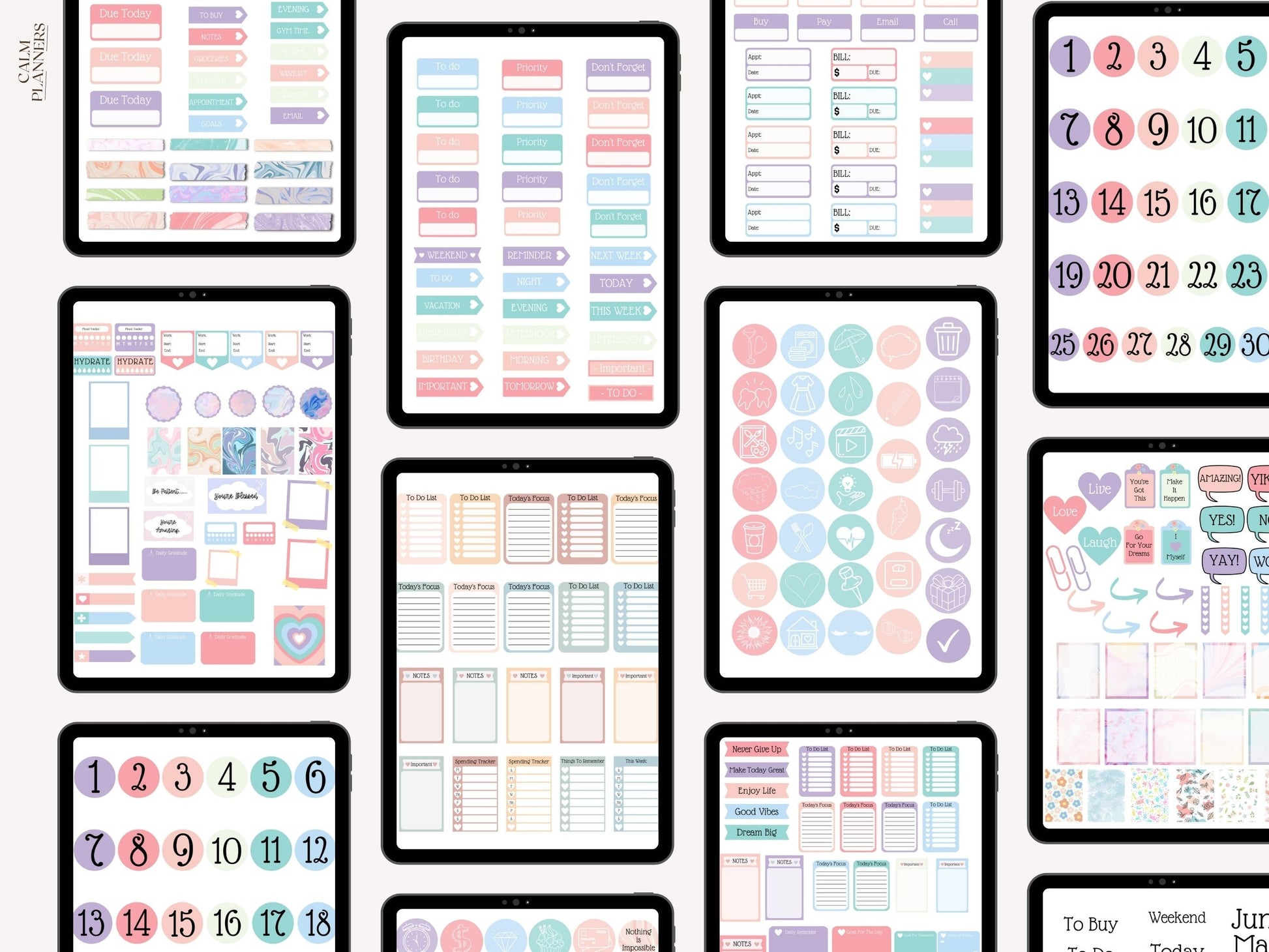 Spread wondrous joy with our 500+ stickers of Pastel Themed Daily widgets! Our vibrant stickers come in an array of cheerful colors, from sunny yellows and fun-filled blues to calming pastels. You'll be sure to find the perfect addition to your digital planners, be it to make your notes extra special, or to add a pleasant touch to your daily routines and schedule.